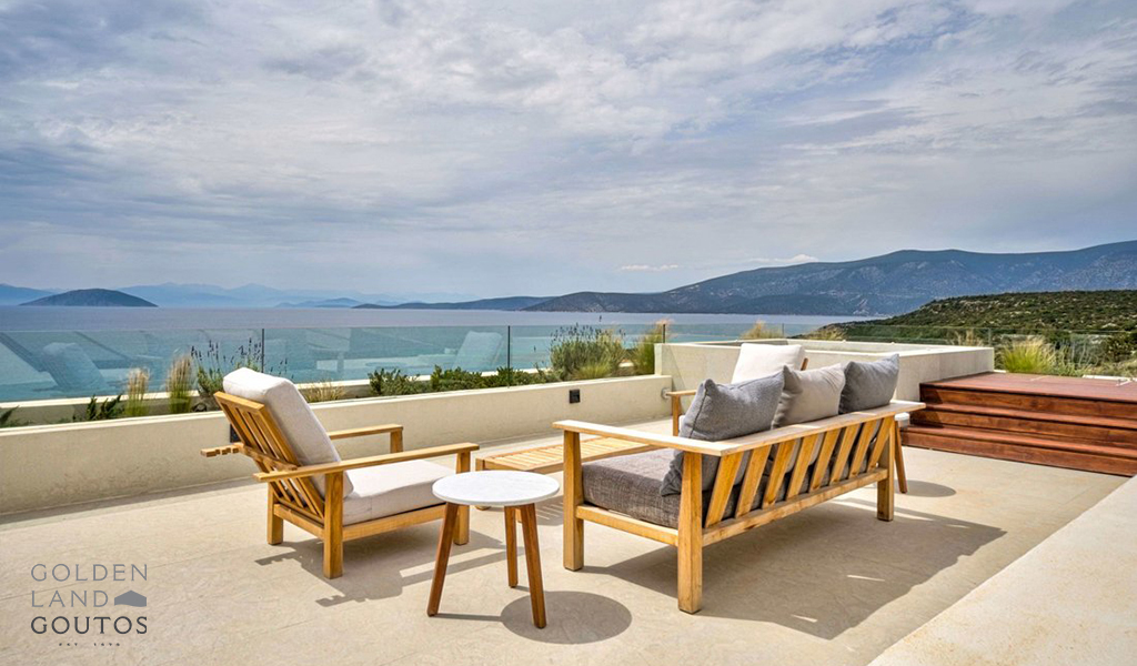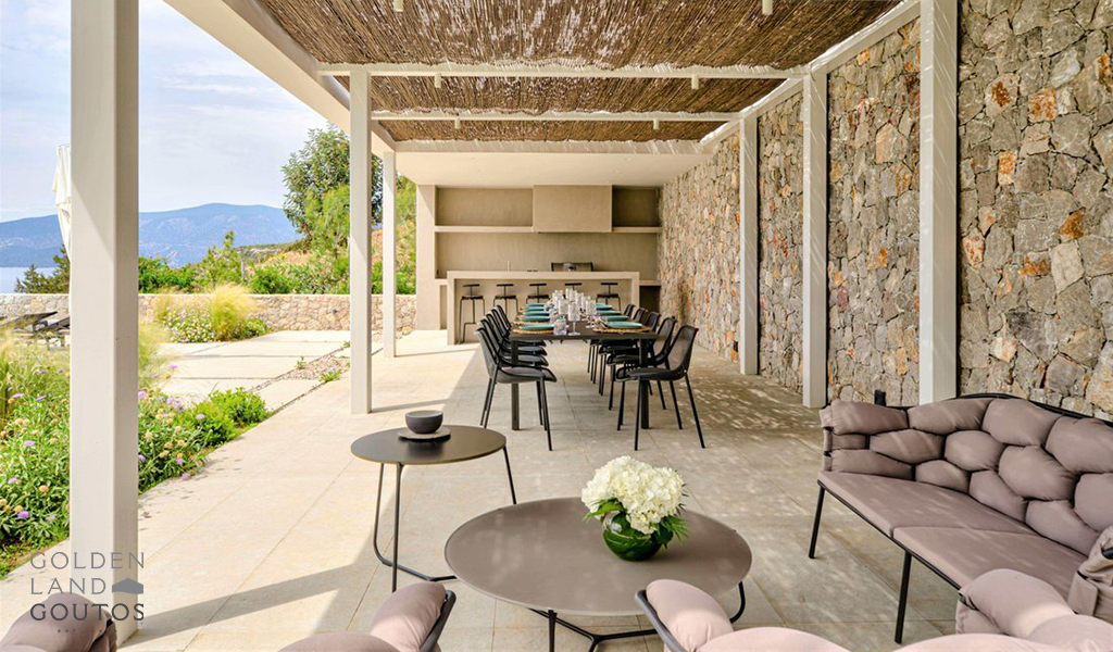 Sunset Haven is a tranquil retreat situated quietly at the rear of Seafront Villas Kilada, offering commanding views of the beautiful blue Aegean Sea. Spanning approximately 555m² (5970 sq ft) across three floors, this villa features six spacious en-suite bedrooms, two large reception areas, a fully equipped kitchen, spa facilities, and fantastic outdoor spaces that ensure seclusion, privacy, and unforgettable sunsets.