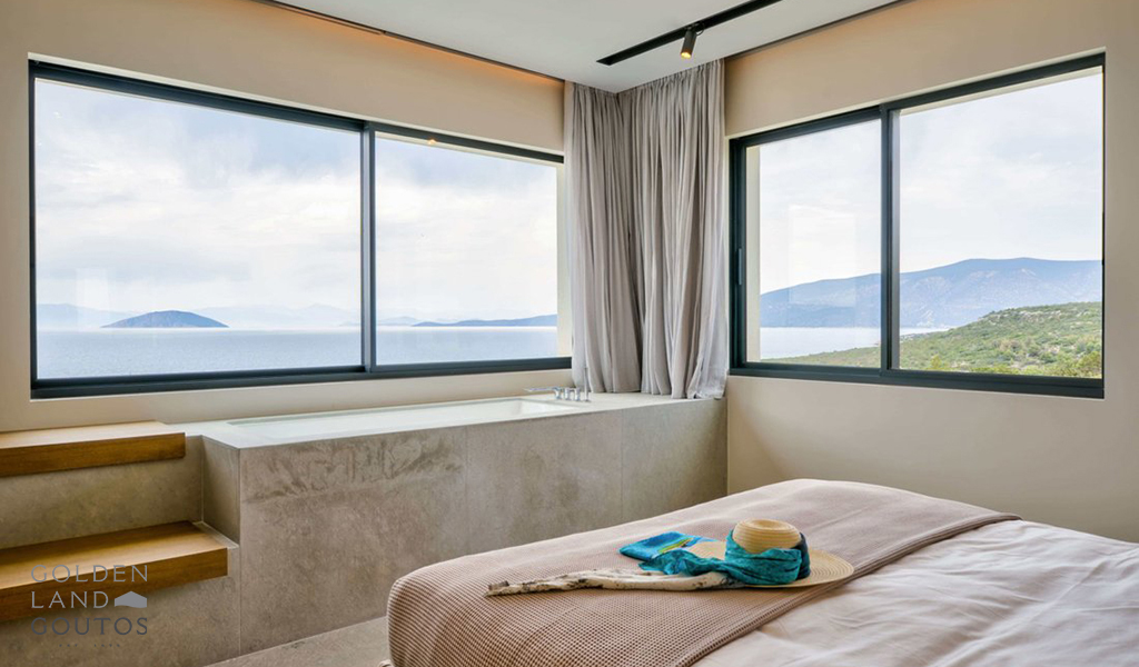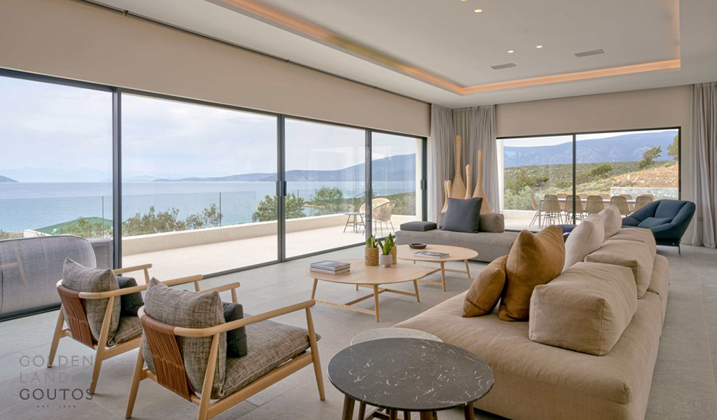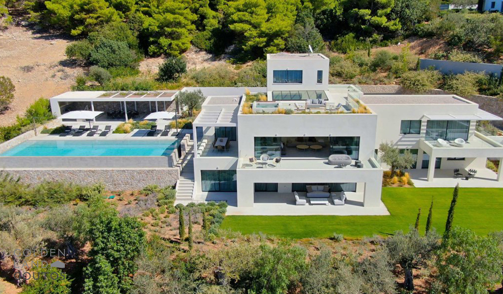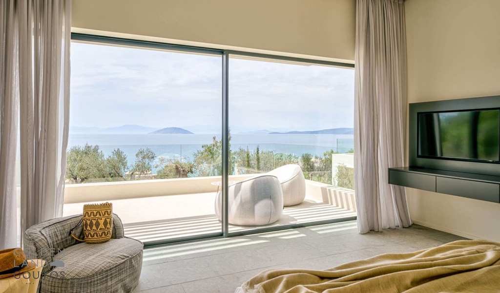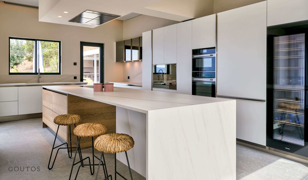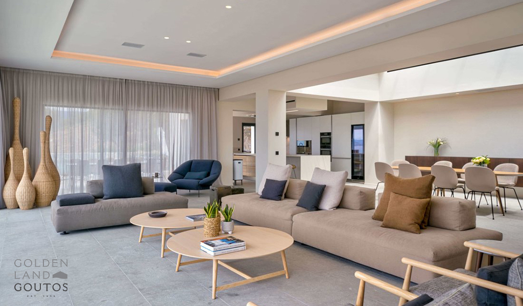 The villa’s interior has been meticulously designed to combine cutting-edge amenities with elegant aesthetics. Soothing neutral tones, high-quality natural materials, and stunning Italian furniture create an ambience of understated opulence, complemented by breathtaking views of the shimmering blue seas on the horizon. The sense of indulgence, relaxation, and well-being is further enhanced by the state-of-the-art Klafs sauna, steam room, and cold water pool facilities in the private spa.