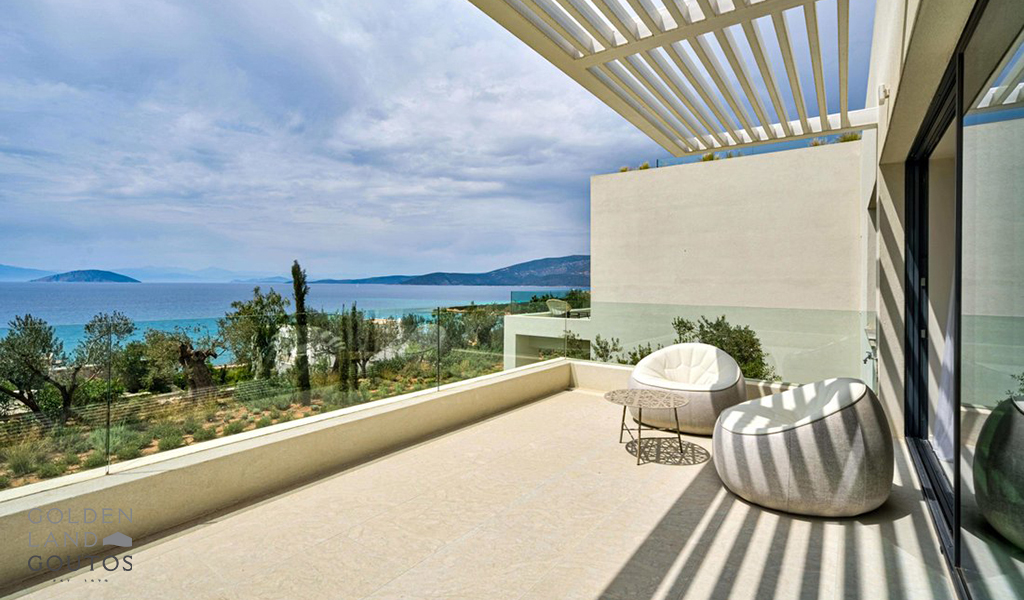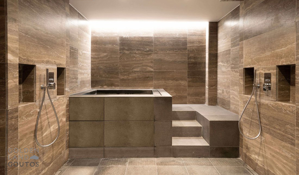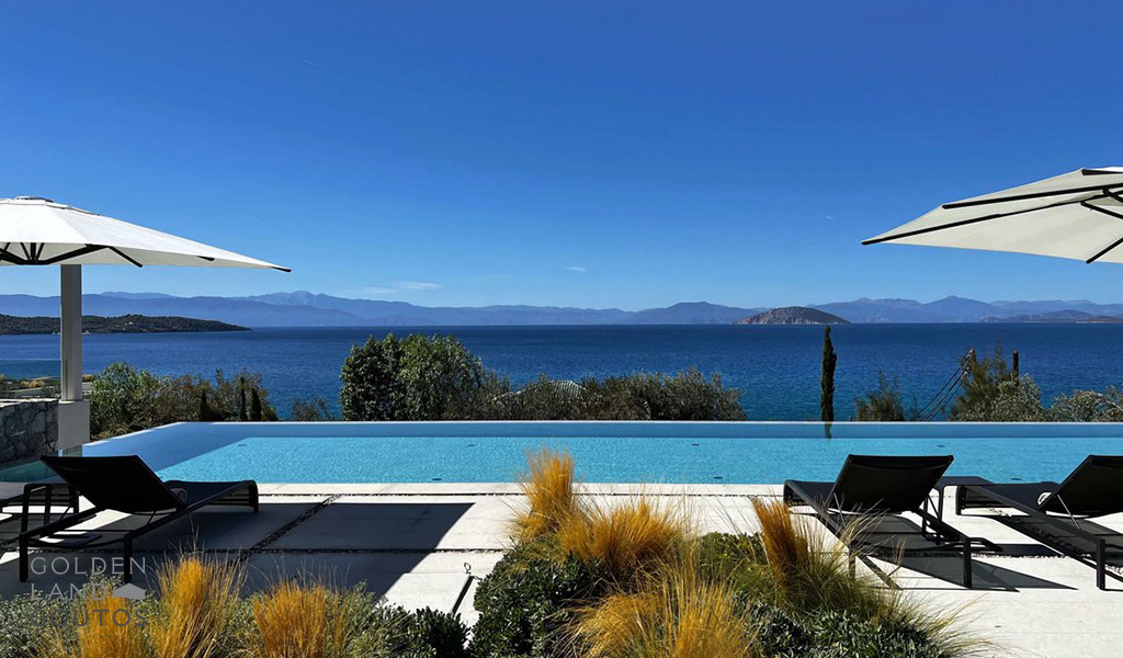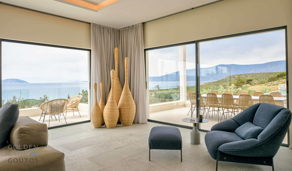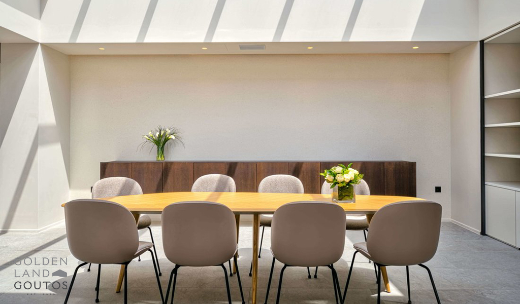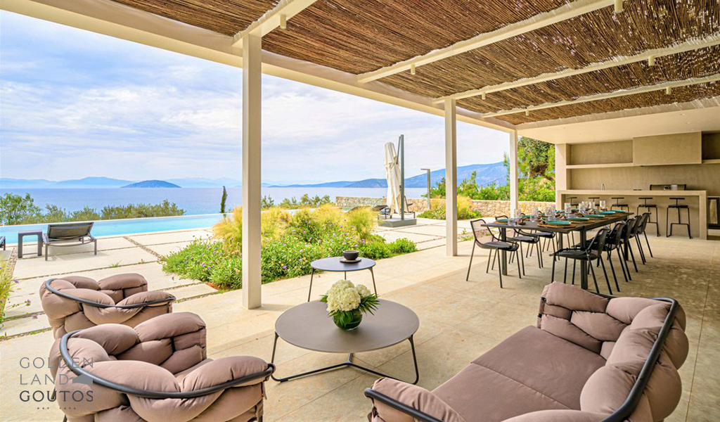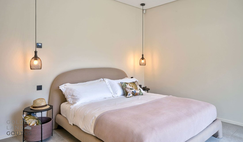 The villa’s interior has been meticulously designed to combine cutting-edge amenities with elegant aesthetics. Soothing neutral tones, high-quality natural materials, and stunning Italian furniture create an ambience of understated opulence, complemented by breathtaking views of the shimmering blue seas on the horizon. The sense of indulgence, relaxation, and well-being is further enhanced by the state-of-the-art Klafs sauna, steam room, and cold water pool facilities in the private spa.