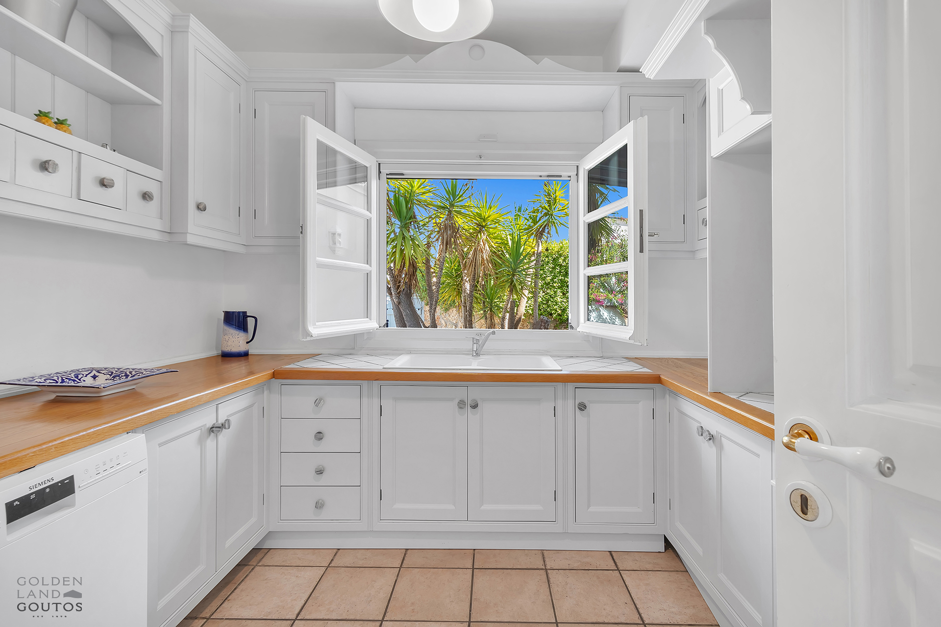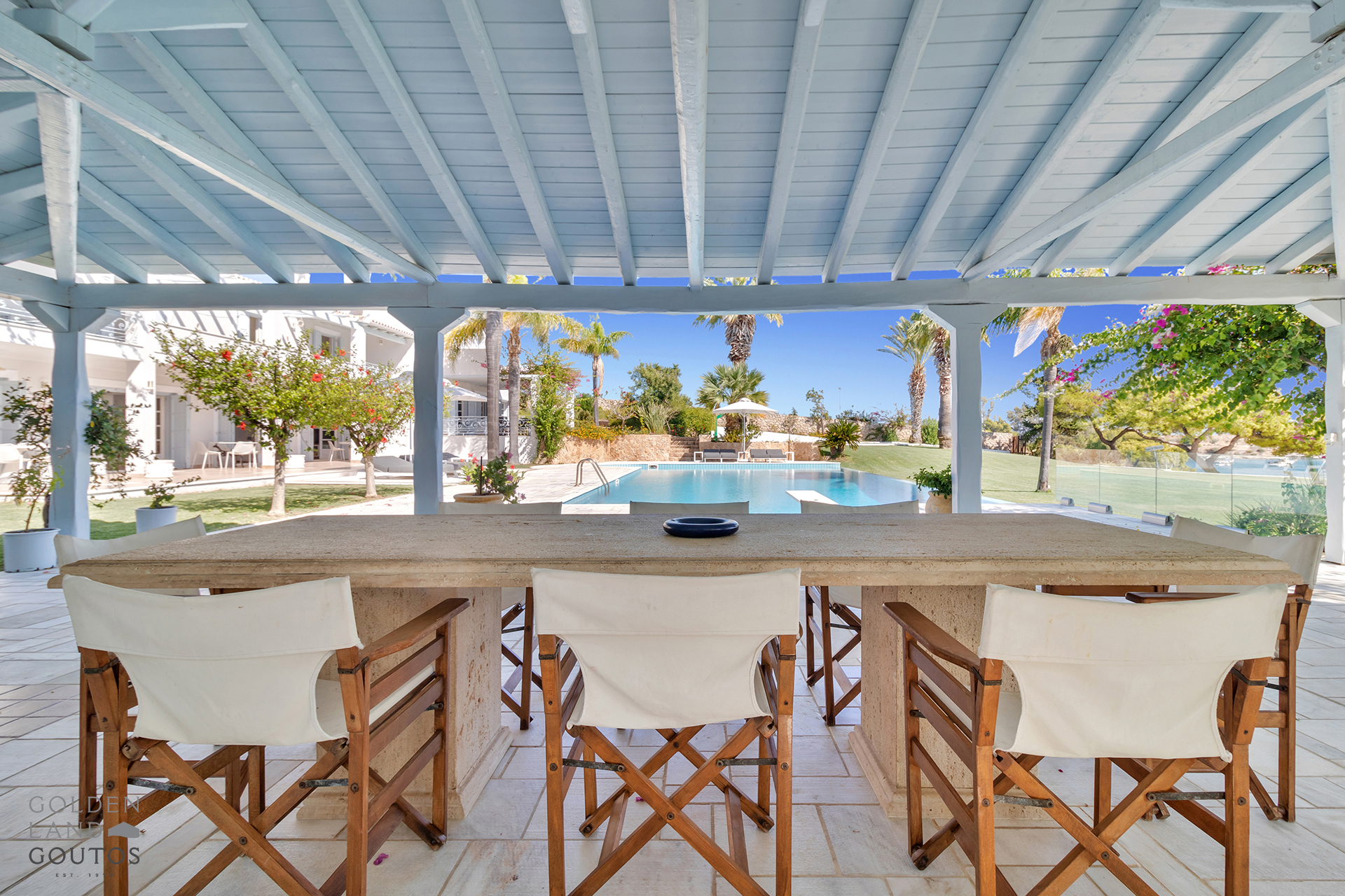 The décor, amenities, and comforts have been curated to the highest standards, creating a space that exudes elegance and sophistication. The villa is surrounded by lush, expansive grounds featuring beautifully landscaped gardens, vibrant flowers, manicured lawns, and ancient olive trees, all contributing to a breathtaking and serene environment. At the heart of this private estate, a large swimming pool, inviting guests to bask in the peaceful atmosphere while taking in the stunning sea views. For those seeking seclusion and relaxation, Villa Imposing offers the perfect retreat, with the beach just a short stroll away, ensuring an unparalleled sense of privacy and bliss.