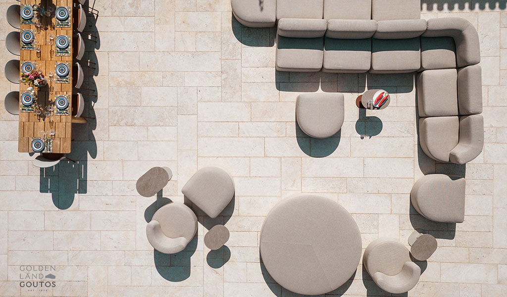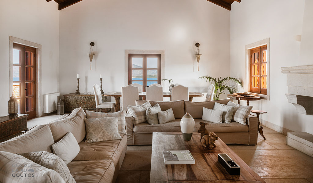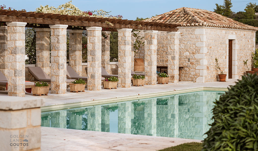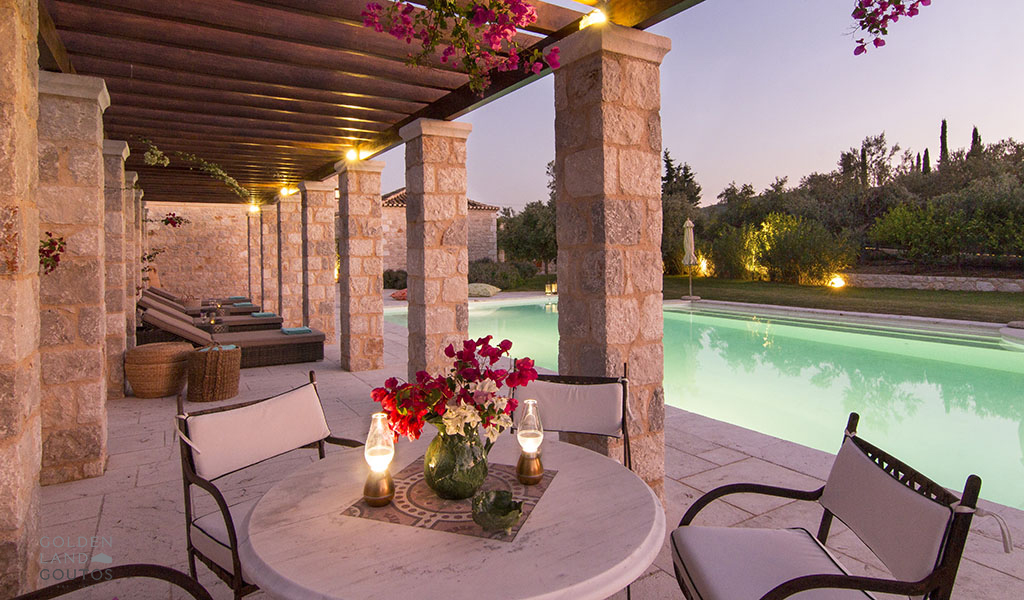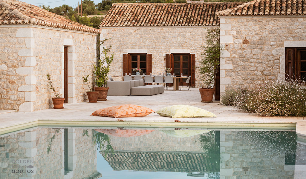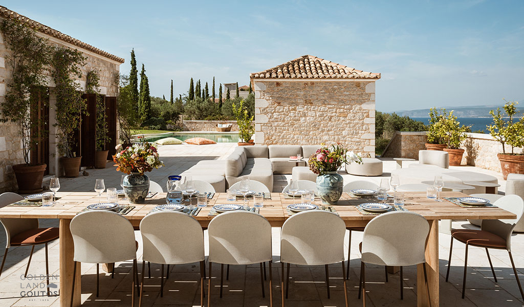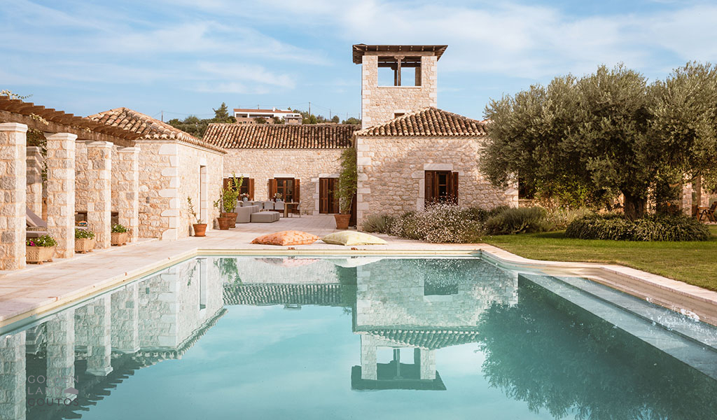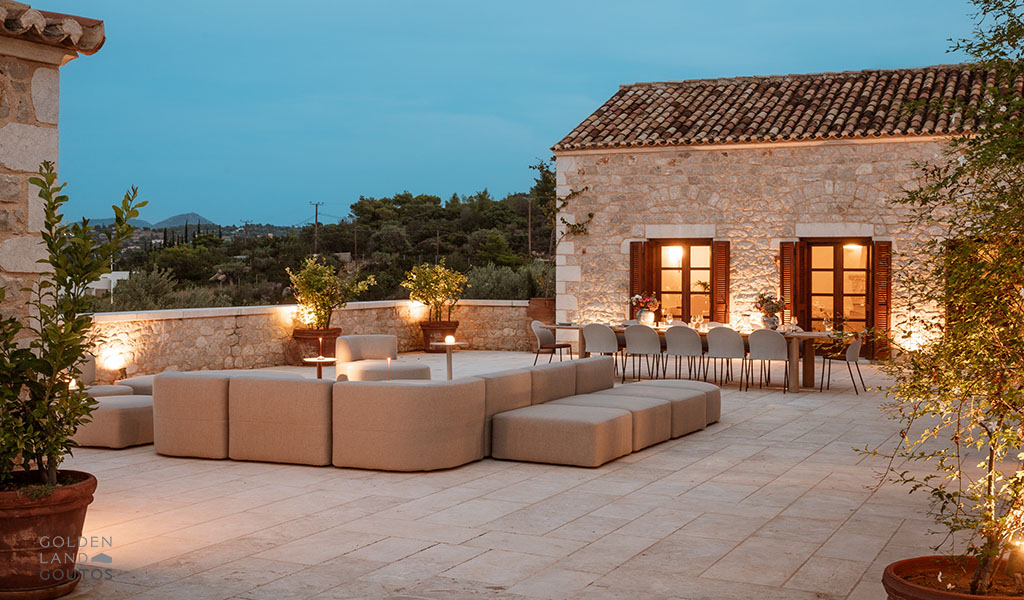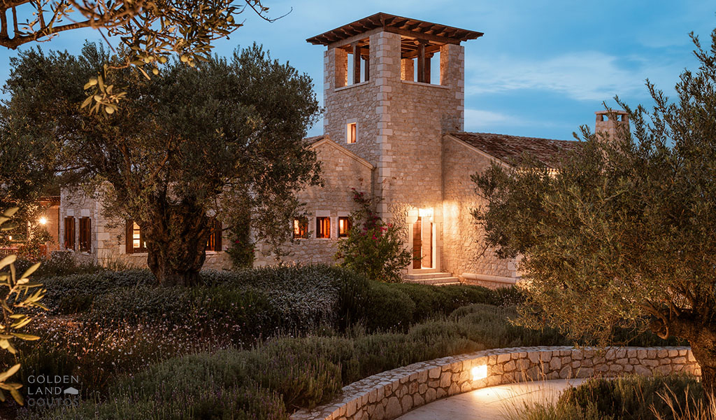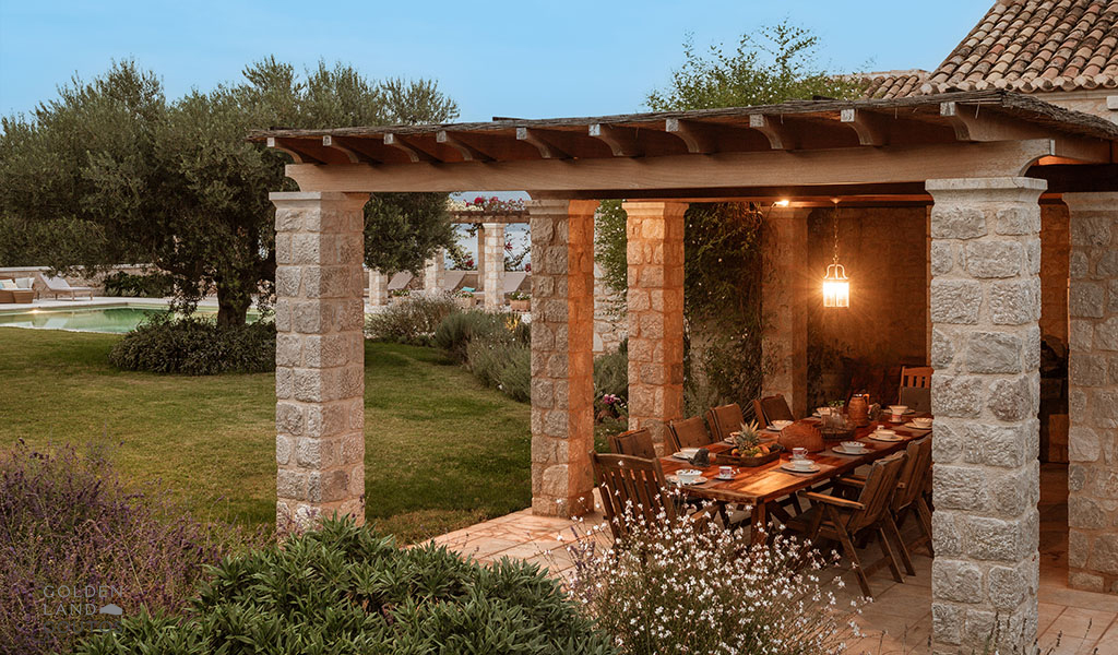 The stone exterior, surrounded by lush green spaces and olive trees, invites visitors to immerse themselves in the natural beauty of the area. Villa Ion’s outdoor spaces are designed to harmonize with the stunning surroundings, providing a peaceful retreat where one can truly relax and unwind.