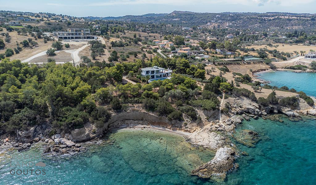Villa Sea Coast offers a unique living experience, directly situated above its own natural private beach. This exceptional property provides breathtaking views of a region steeped in history, once the birthplace of Greek civilization. During the summer, the offshore thermic breeze ensures calm, glass-like waters, perfect for swimming.