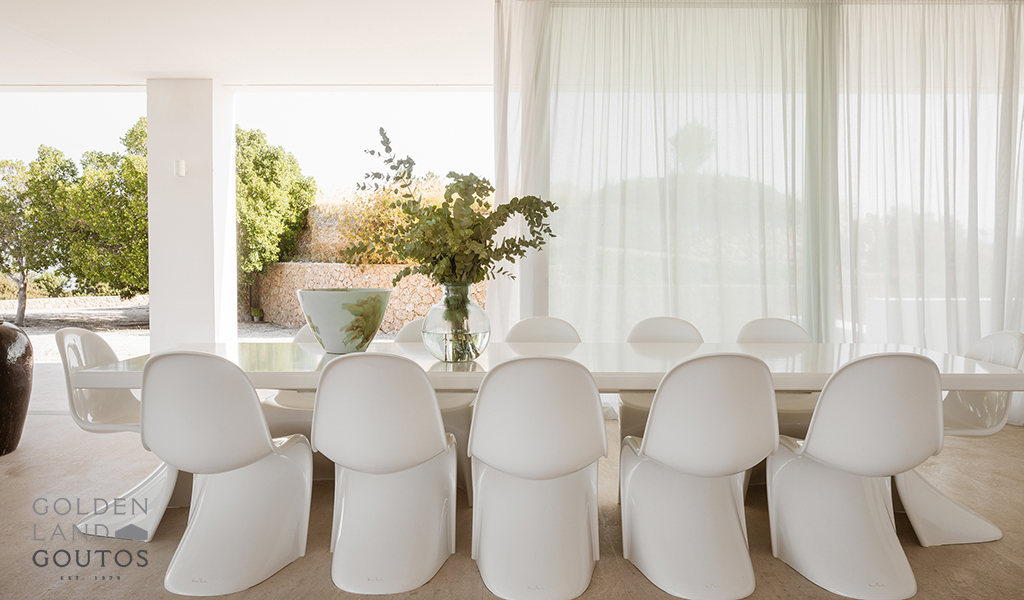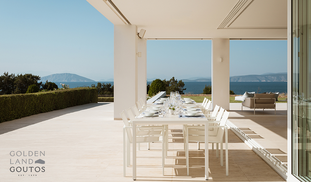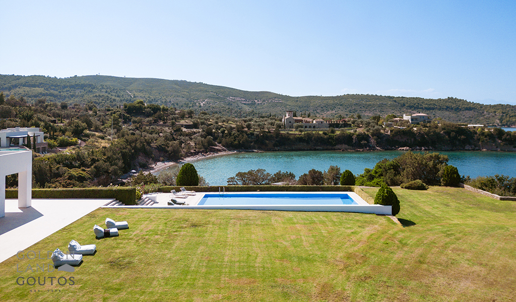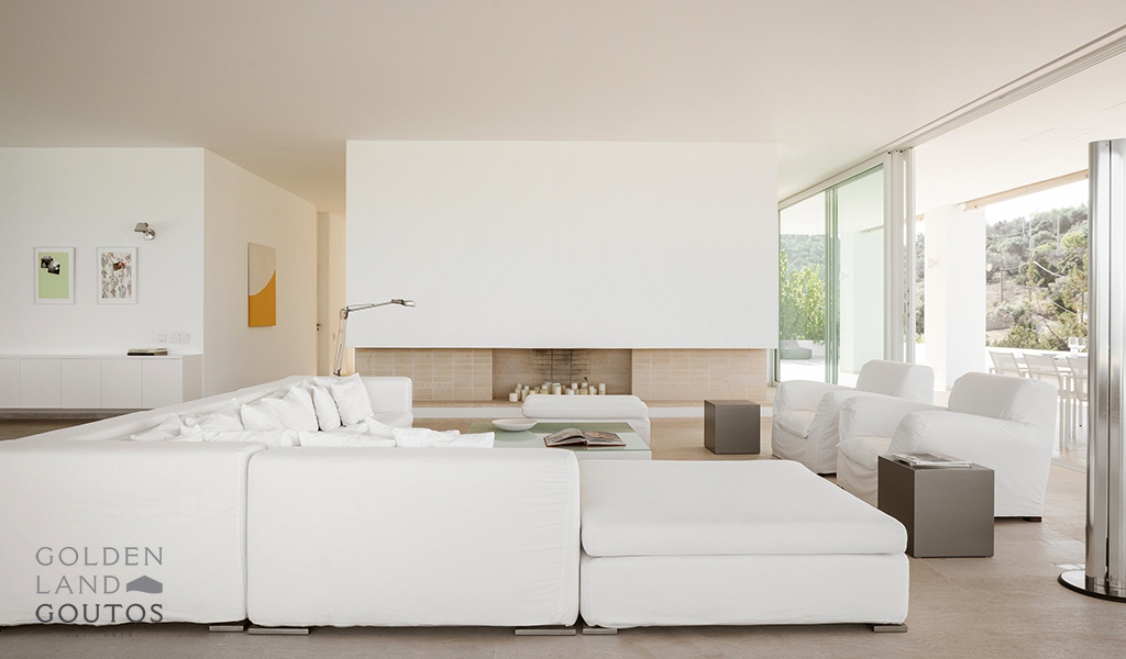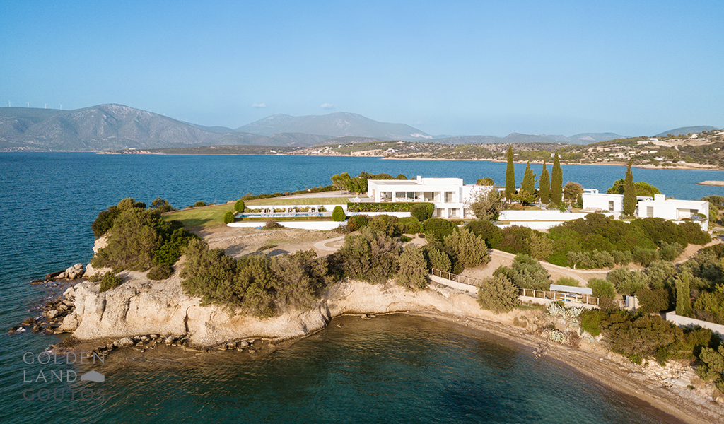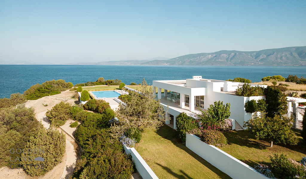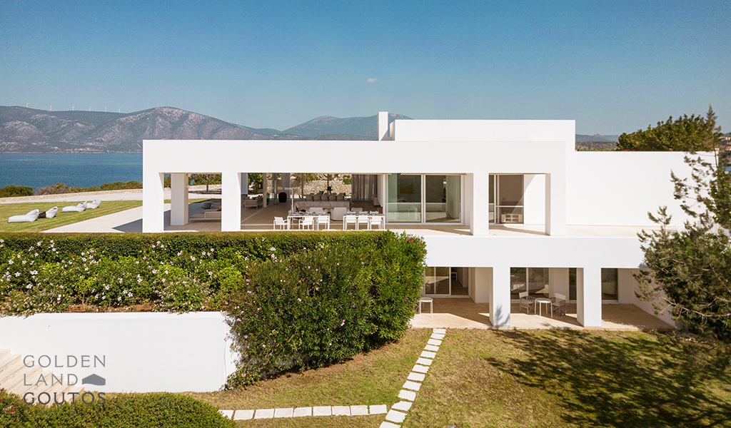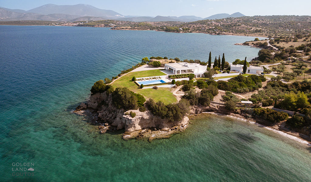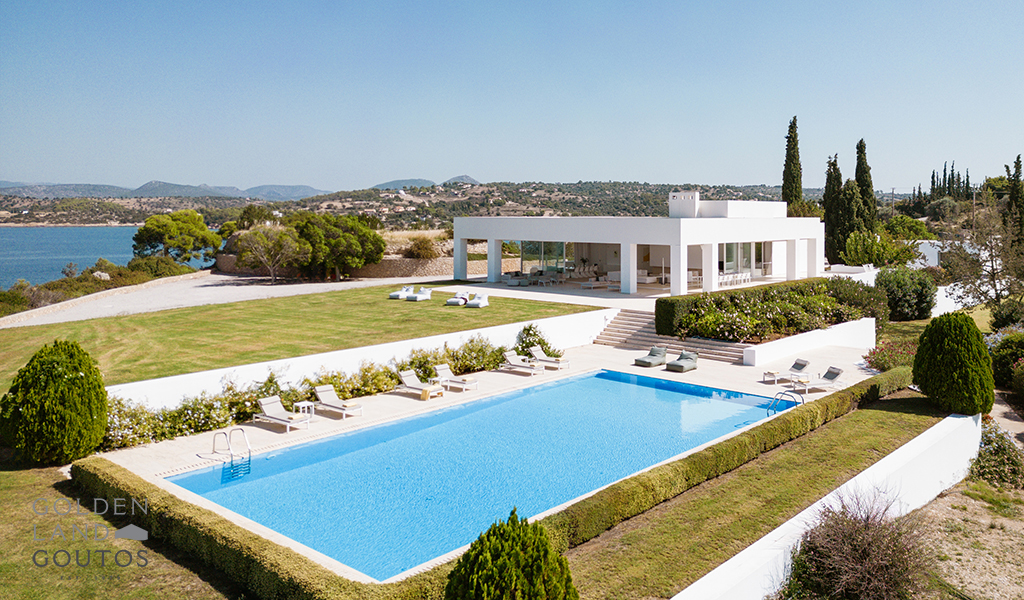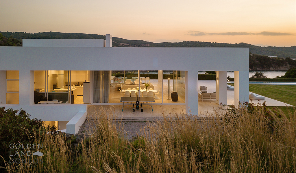 White House a luxury seafront property in Porto Heli – Greece. An internationally well-known architect has designed this modern “holiday temple”, taking full advantage of a rare land plot. Built on a west facing peninsula of around 14.000 m², the villa is located in Argolida, neighboring some of the most prestige Greek villas & estates.